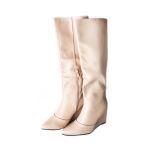 Γυναικεία ψηλοτάκουνη μπότα σε μπέζ χρώμα τύπου πλατφόρμα. Διαθέτει εσωτερικό φερμουάρ.